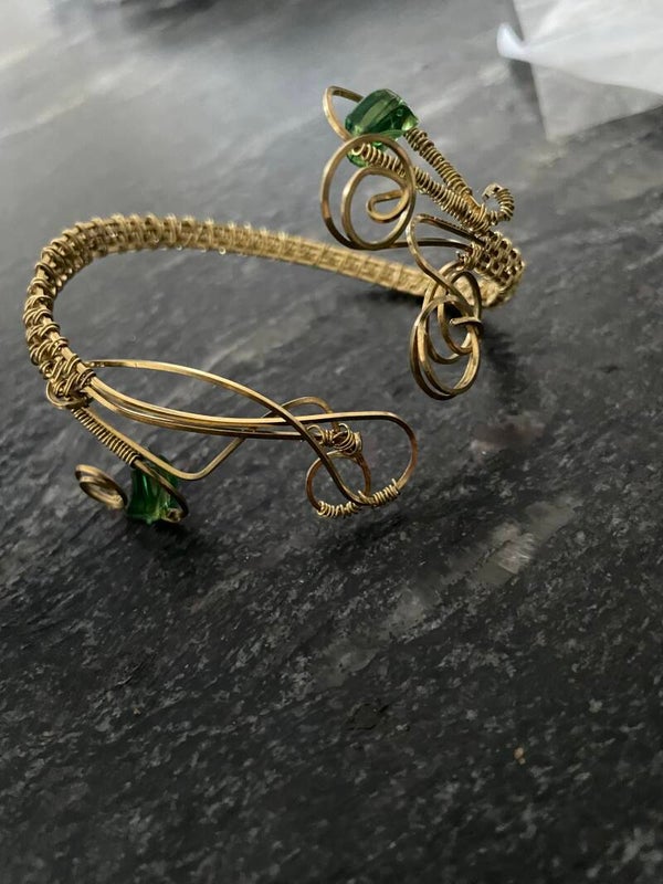 Armreif golden mit grünen Steinen