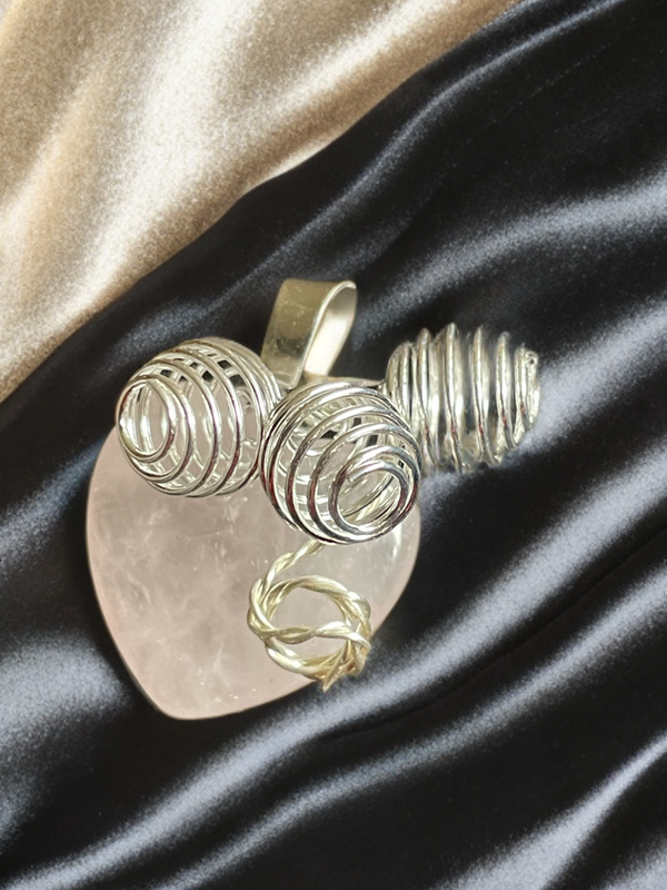 Anhänger mit einem kleinen Herz aus Rosenquarz mit Drahtperlen