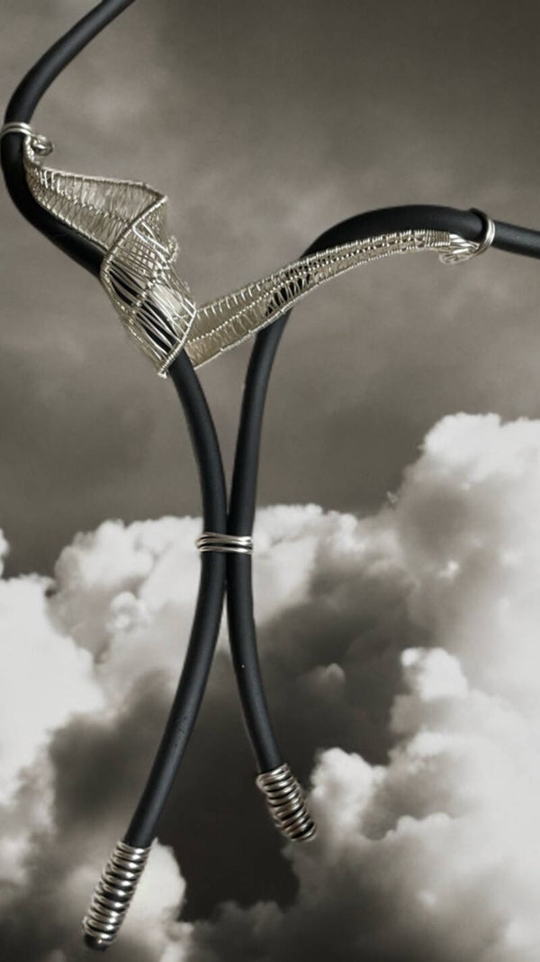 Wunderschön geschwungen an einem Kautschukband verbindet das filigran geschwungene Blatt die beiden Seiten