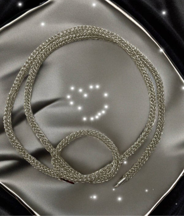 Die Kette ist ca 85 cm lang und kann ganz individuell geknotet werden. Der Magnetverschluss ist sehr praktisch