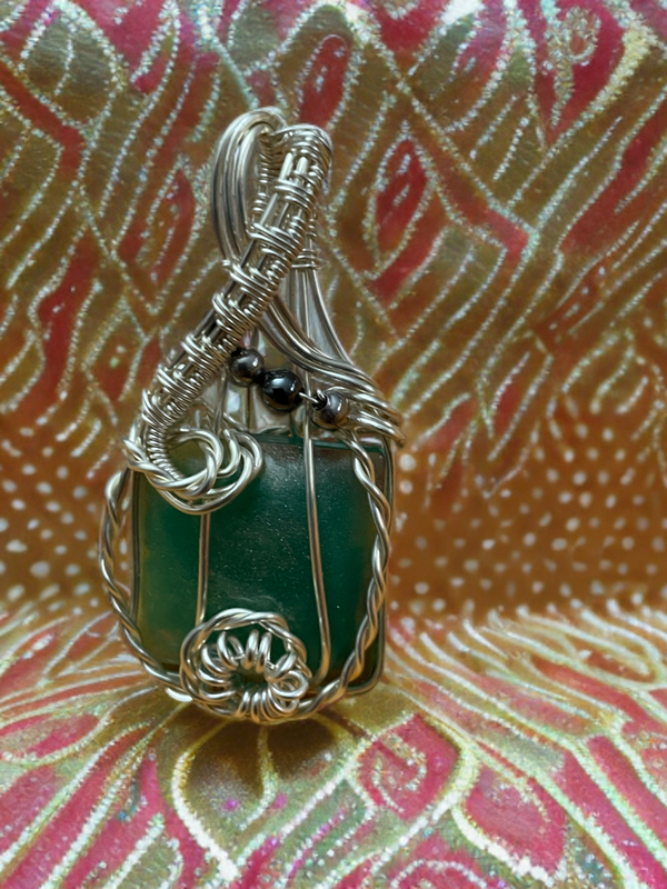 Resinstein eingewebt in silbernen Schmuckdraht