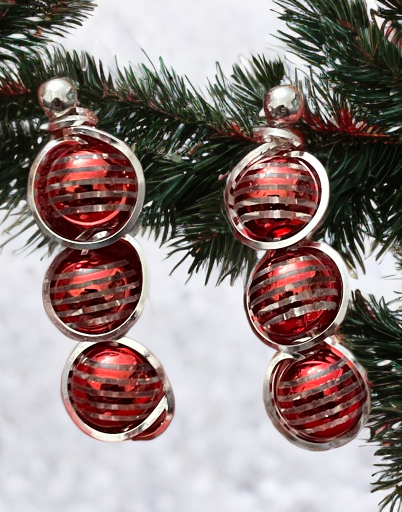 Ohrringe mit 3 rot/silbernen Perlen