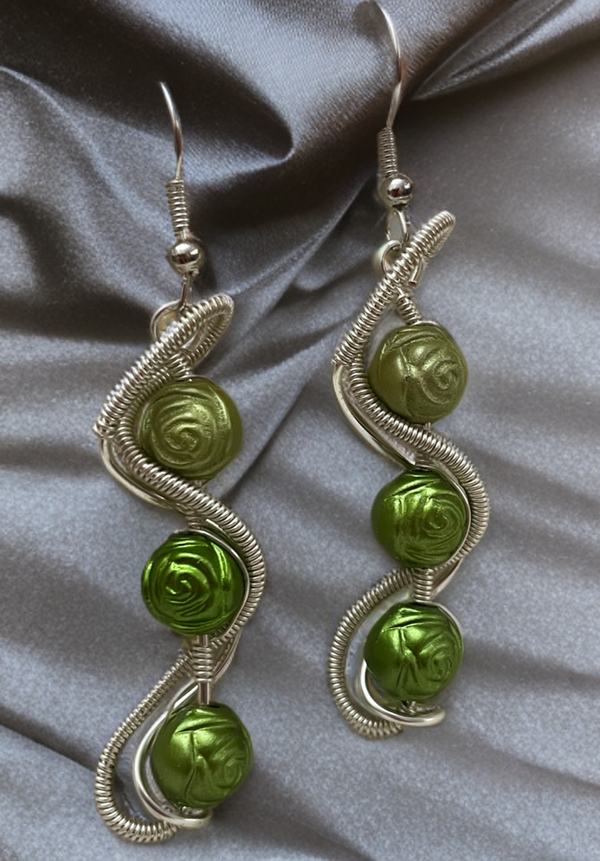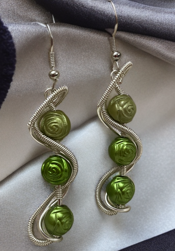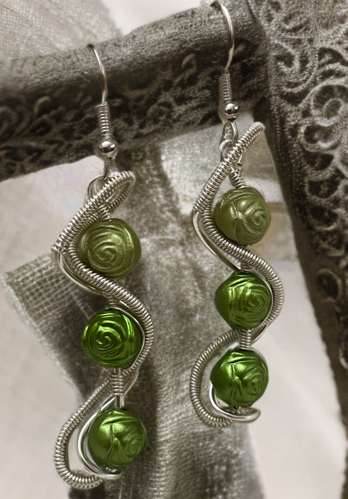 Ohrringe mit drei grünen Rosenperlen