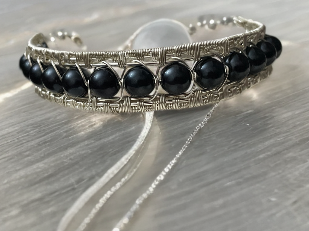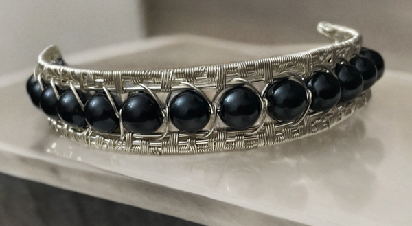 Armreif mit großen schwarzen Perlen