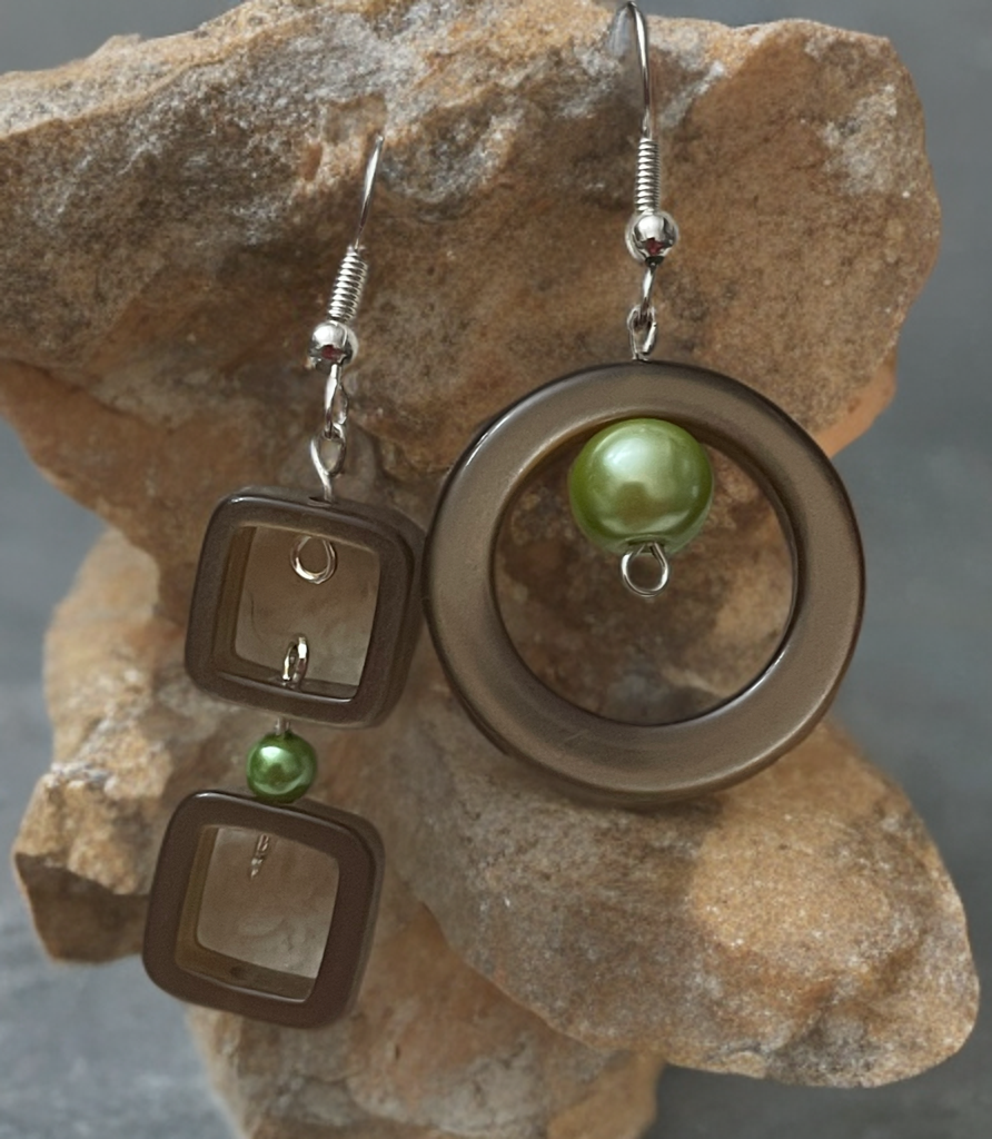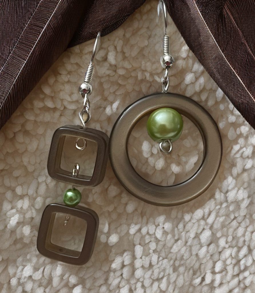 Runder Ohrring in Kombination mit einem eckigen Ohrring