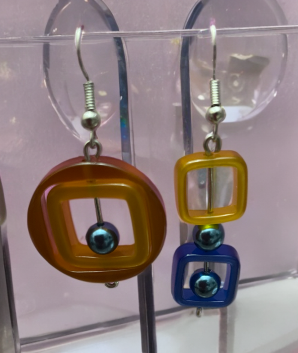 Das Spiel aus verschiedenen Formen zeichnet diese Ohrringe aus. Das Material ist sehr leicht und daher ausgesprochen angenehm zum Tragen