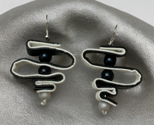 Leder-Ohrringe in schwarz/weiß