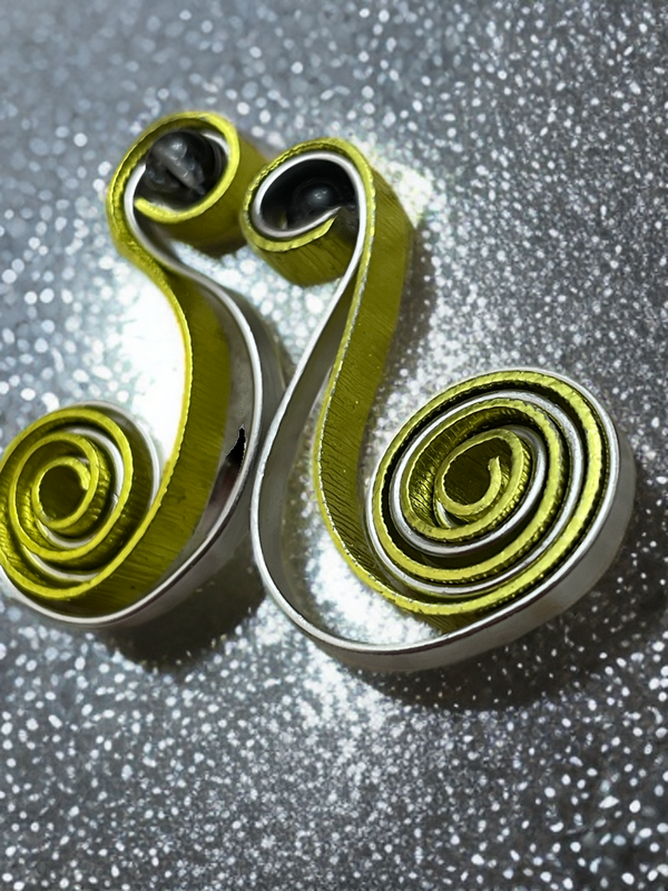 Die Ohrstecker sind aus flachem Aluminiumdraht spiralenförmig designed.