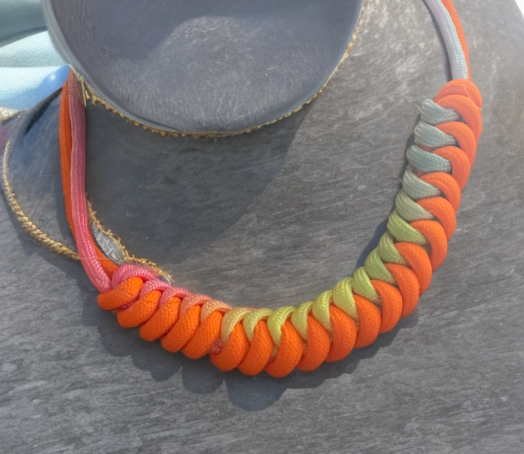 Die Farben der Kette stimmen auf den Frühling ein. Die Kette ist circa 45 cm lang und hat ein Verlängerung- Kettchen.