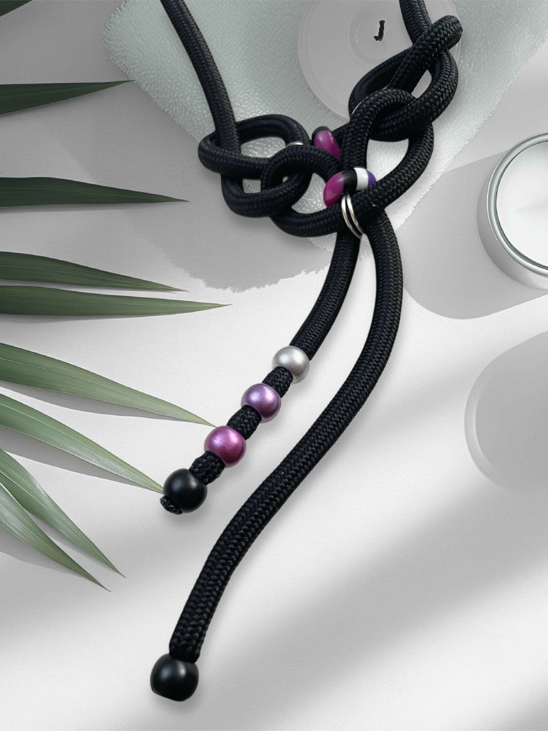 Paracord Halkette, spannend geknotet, mit einem interessanten Farbenspiel der Perlen